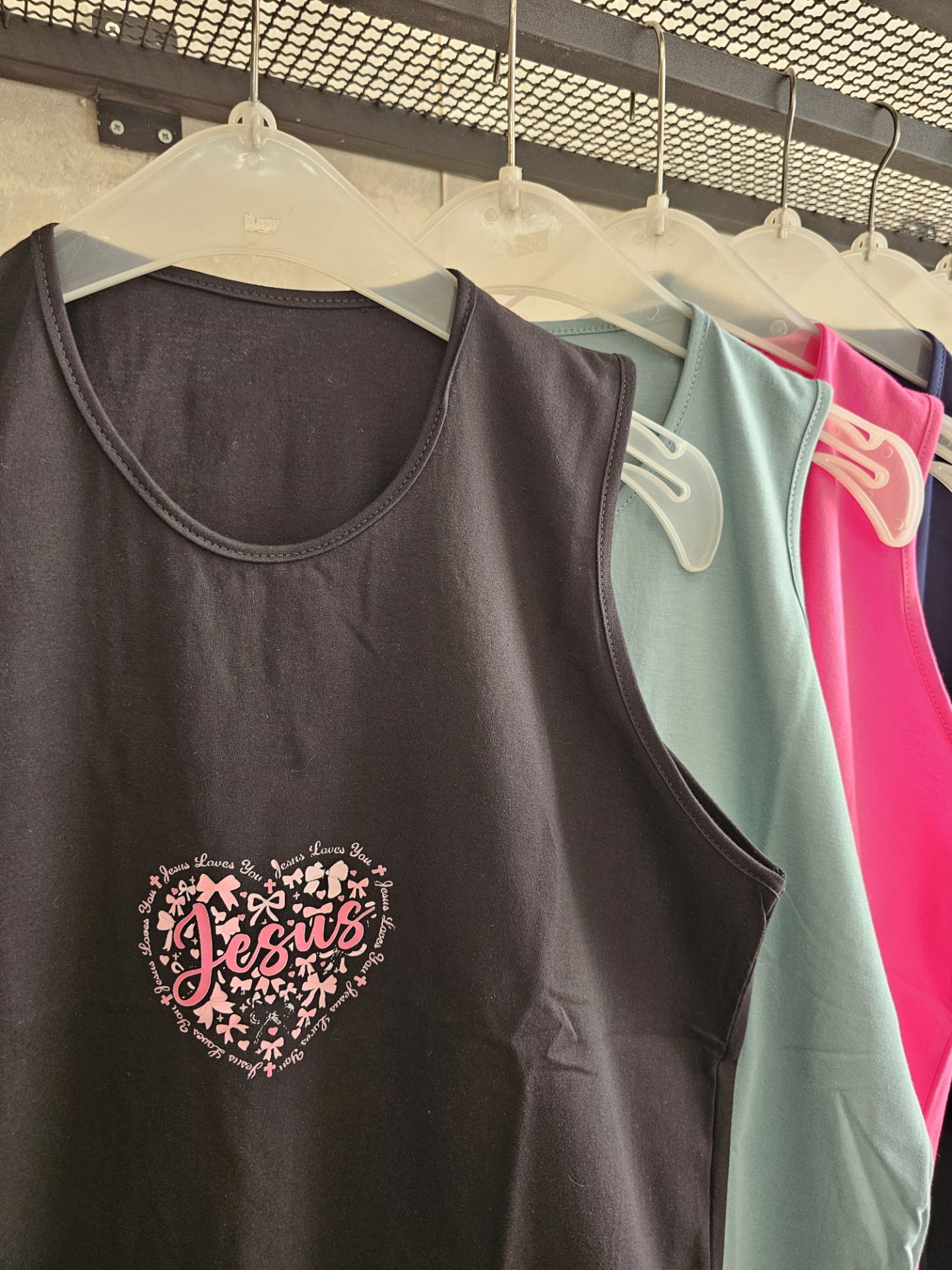 تاپ نخ پنبه سوپر طرح قلب رنگ مشکی کد 100200